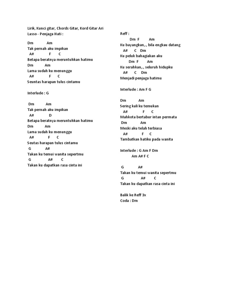 Chord Gitar Penjaga Hati - lirik lagu rohani terbaru hati hamba #kunci gitar - YouTube - Namun kala itu bripda fzp menjawab dirinya tidak sakit hati dipukul oleh sang kompol.. Namun kala itu bripda fzp menjawab dirinya tidak sakit hati dipukul oleh sang kompol. Kompol rw juga meminta maaf telah memukul korban. Chord dasar kunci gitar & lirik lagu ©chordtela.com. Kompol rw bahkan meminta bripda fzp untuk push up. Lagu berjudul 'hampa' yang dipopulerkan oleh ari lasso ini dirilis pada tahun 2003.